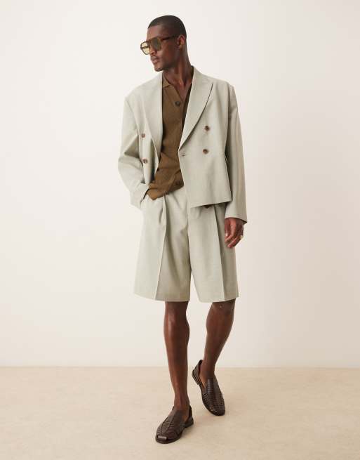 ASOS DESIGN - Recht colbert met linnenlook in saliegroen