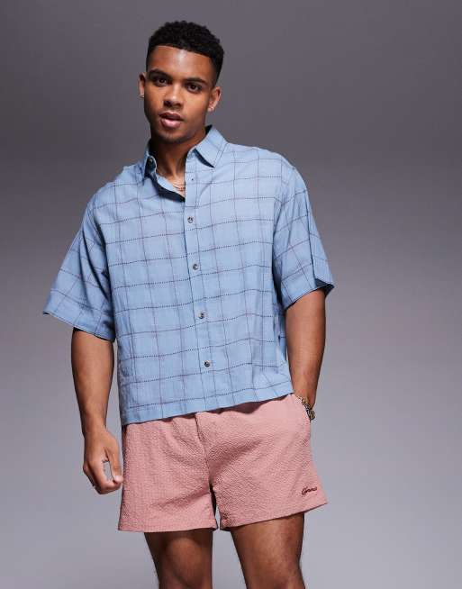 ASOS DESIGN - Recht geruit overhemd met reverskraag in blauw
