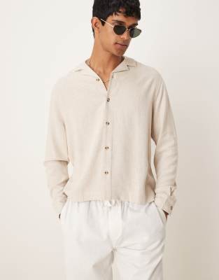ASOS DESIGN - Recht overhemd van linnenmix met reverskraag in stone
