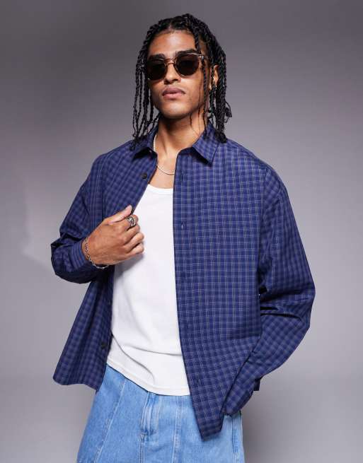 ASOS DESIGN - Recht oversized geruit overhemd in marineblauw
