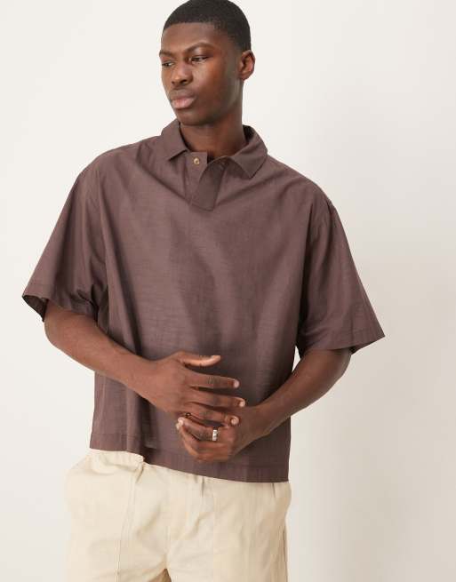 ASOS DESIGN - Recht oversized overhemd met linnenlook in bruin