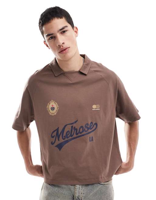 ASOS DESIGN - Recht oversized polo met print in bruin