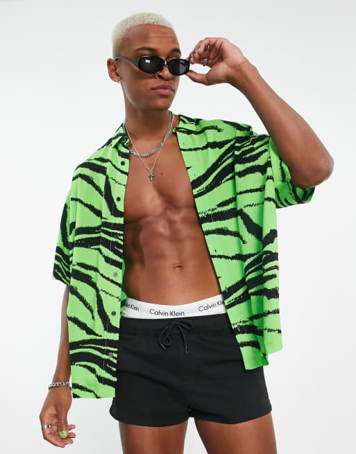 ASOS DESIGN - Recht oversized T-shirt in felgroen met zebraprint