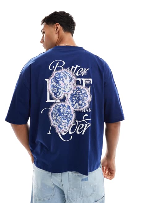 ASOS DESIGN - Recht oversized T-shirt met grafische bloemenprint in marineblauw