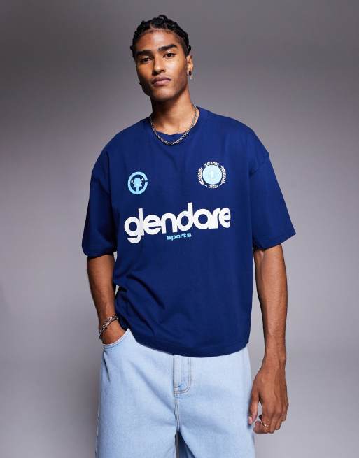 ASOS DESIGN - Recht oversized T-shirt met grafische sportprint in marineblauw