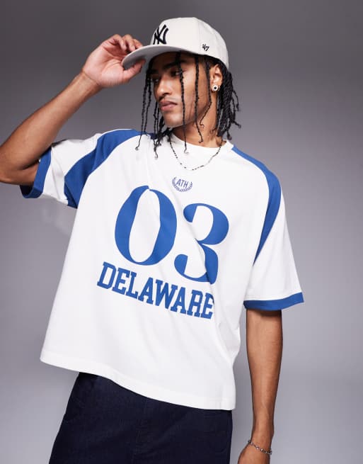 ASOS DESIGN - Recht oversized T-shirt met sport print in gebroken wit