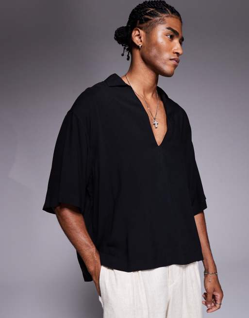 ASOS DESIGN - Recht oversized viscose overhemd zonder sluiting in zwart