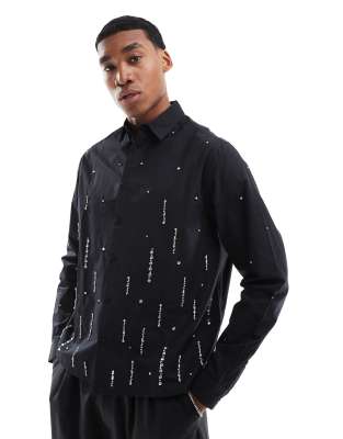 ASOS DESIGN - Recht poplin overhemd met versiering in zwart