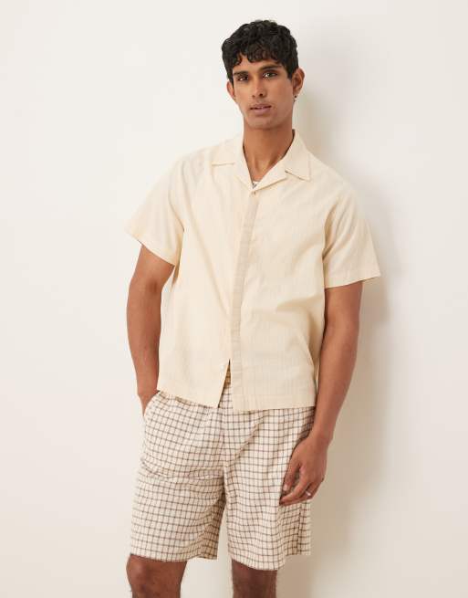 ASOS DESIGN - Recht revers overhemd in jacquard in stone