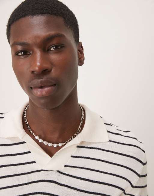 ASOS DESIGN - Recht ruimvallende gestreepte polo in wit