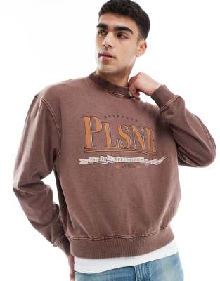 ASOS DESIGN - Recht sweatshirt met print in bruin met acid wash