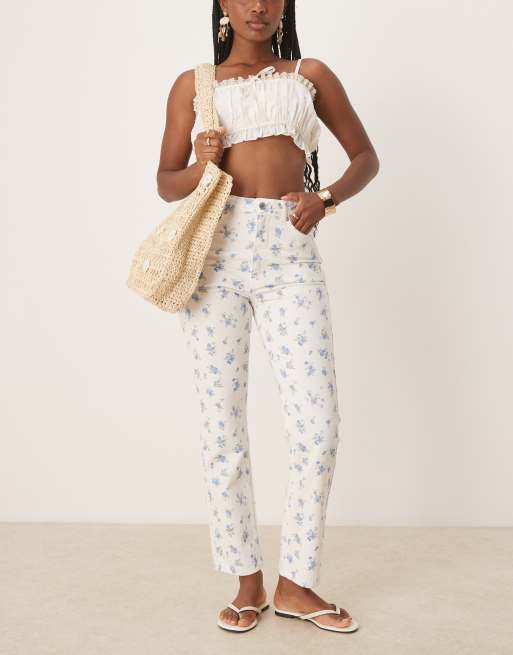 ASOS DESIGN - Rechte jeans met halfhoge taille in bloemenprint