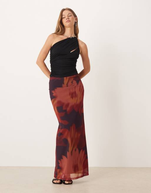 ASOS DESIGN - Rechte maxi rok met lage taille en bloemenprint in vijg, deel van co-ord set