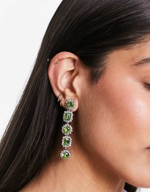 ASOS DESIGN - Rechte oorhangers met groen sierkristallen in zilverkleur