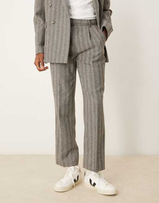 ASOS DESIGN - Rechte pantalon met rechte pijpen en visgraatmotief in antracietgrijs