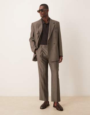ASOS DESIGN - Rechte pantalon van wollook met rechte pijpen en visgraatmotief in bruin