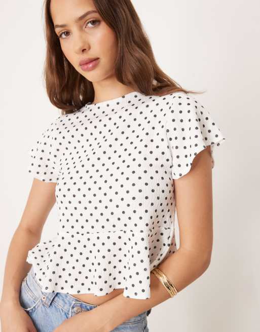 ASOS DESIGN - Rechte top met ruches in crème met stippen