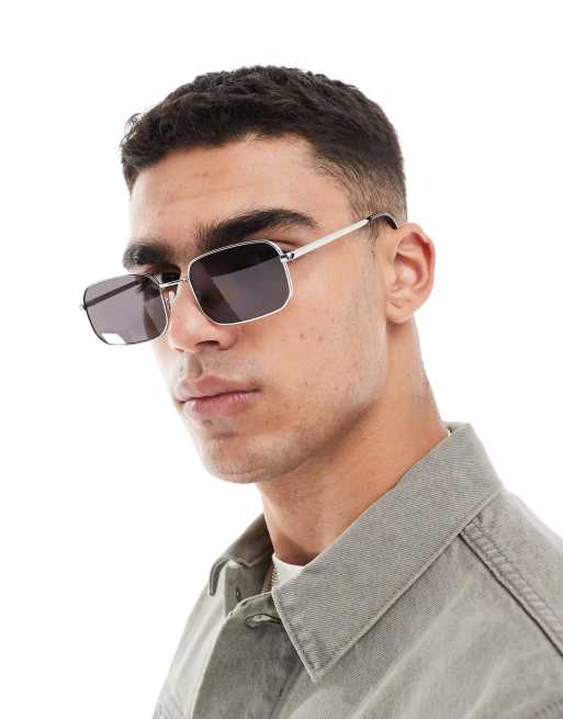 ASOS DESIGN - Rechthoekige metalen zonnebril met zwarte glazen in zilver