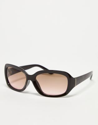 ASOS DESIGN - Rechthoekige zonnebril met gebogen pootjes in bruin