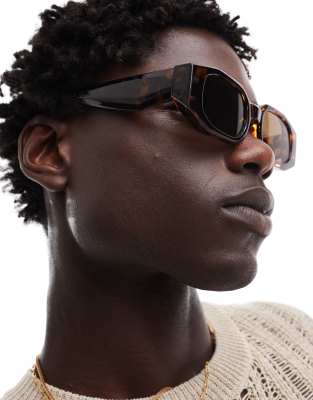 ASOS DESIGN - Rechthoekige zonnebril met tortoise in bruin