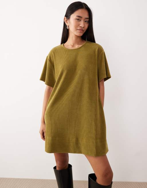 ASOS DESIGN - Rechtvallende mini-jurk van corduroy met korte mouwen en zakken in groen