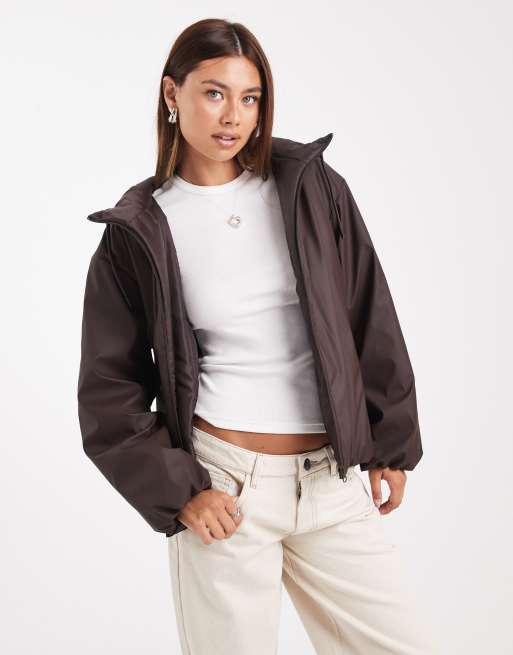 ASOS DESIGN - Regen bomberjack met rubbercoating en capuchon in chocoladebruin