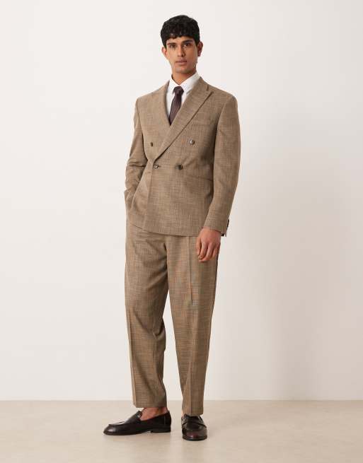 ASOS DESIGN - Regular-fit double breasted pak met kruisarcering in bruin