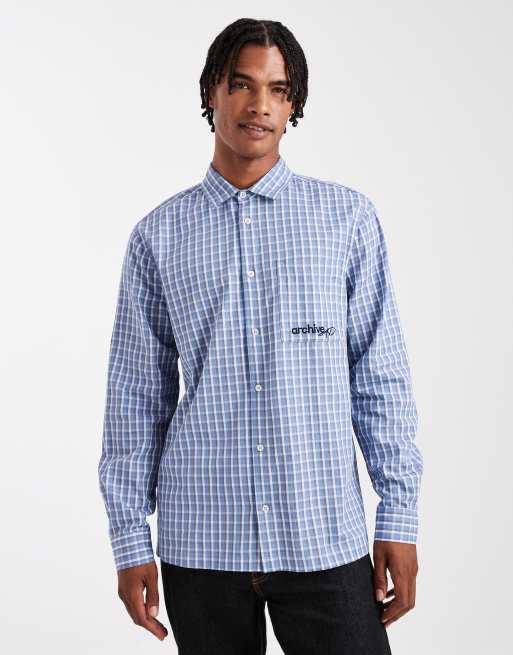 ASOS DESIGN - Regular-fit geruit overhemd met borduursel op de borst in blauw
