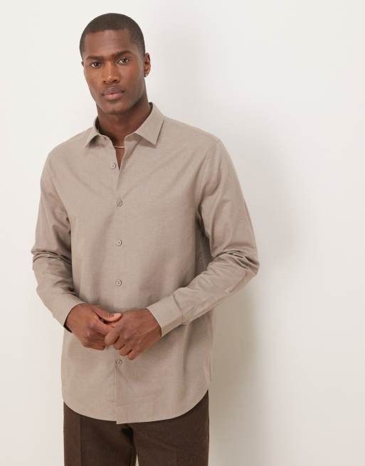 ASOS DESIGN - Regular-fit net overhemd van linnenmix in bruin