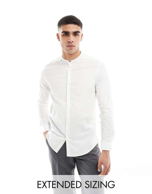 ASOS DESIGN - Regular-fit net overhemd zonder kraag in wit
