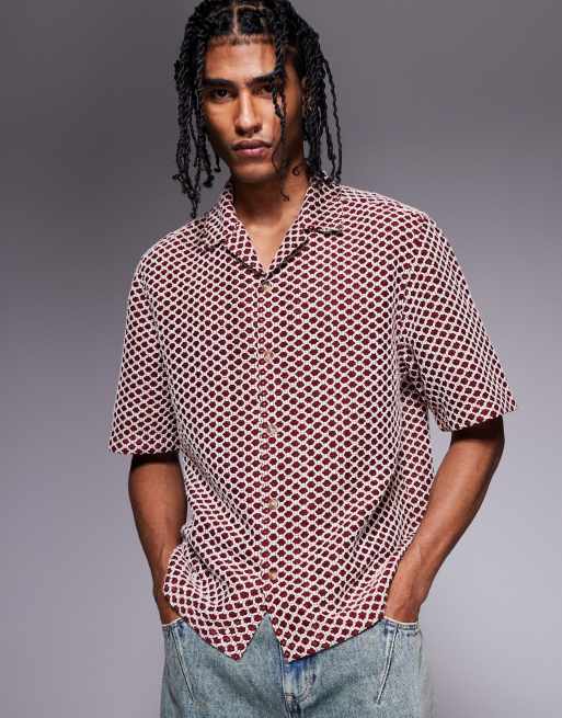 ASOS DESIGN - Regular-fit overhemd met premium textuur in rood en wit