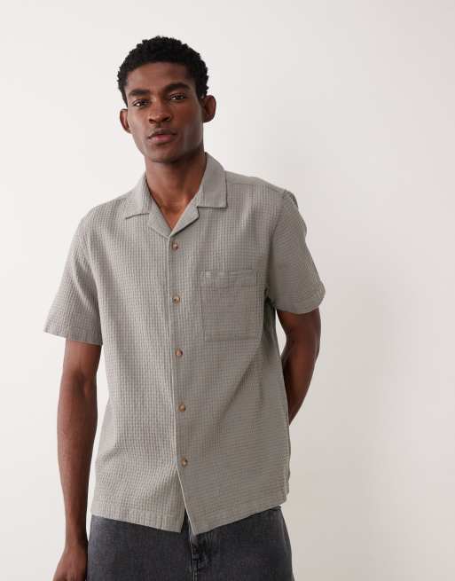 ASOS DESIGN - Regular-fit overhemd met textuur in kaki