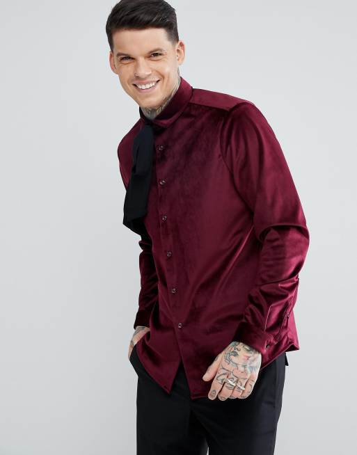 ASOS Design - Regular-fit overhemd van fluweel met grote strik