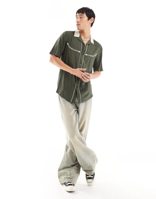 ASOS DESIGN - Regular-fit overhemd van viscose met reverskraag, korte mouwen en westernstijl in donkergroen
