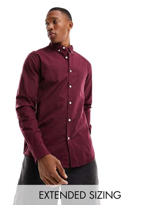 ASOS DESIGN - Regular-fit oxford overhemd in bordeauxrood