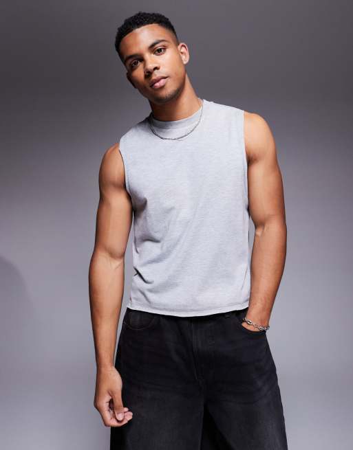 ASOS DESIGN - Regular-fit rechte tanktop in gemêleerd grijs