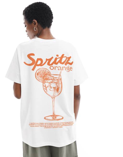 ASOS DESIGN - Regular-fit T-shirt met print van 'Orange Spritz' in wit
