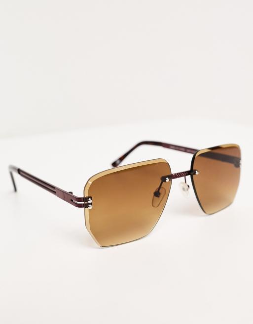 ASOS DESIGN - Retro zonnebril zonder montuur in chocoladebruin