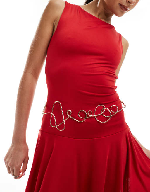 ASOS DESIGN - Riem met abstracte kronkelende schakels in goud