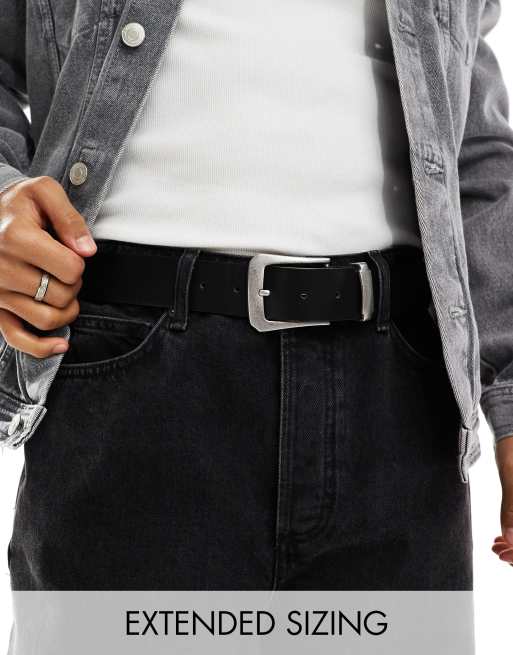 ASOS DESIGN - Riem van imitatieleer met zilveren gesp en keeper in zwart