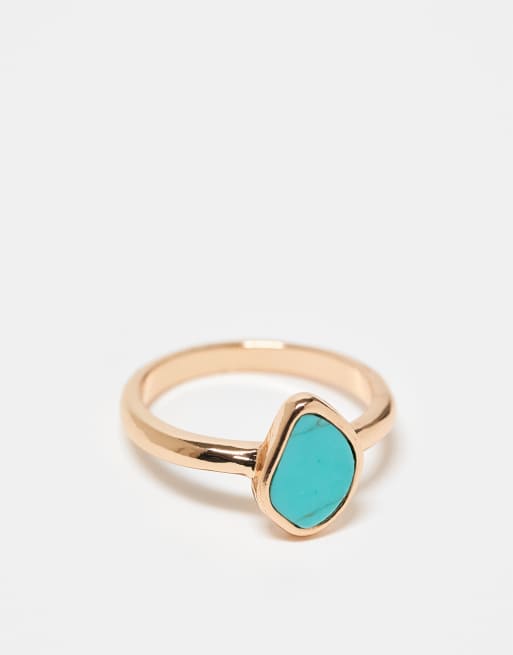 ASOS DESIGN - Ring met imitatie-halfedelsteen in goudkleur