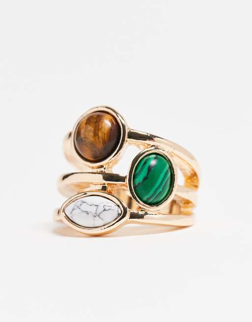 ASOS DESIGN - Ring met meerdere bandjes en imitatie-halfedelstenen in goudkleur
