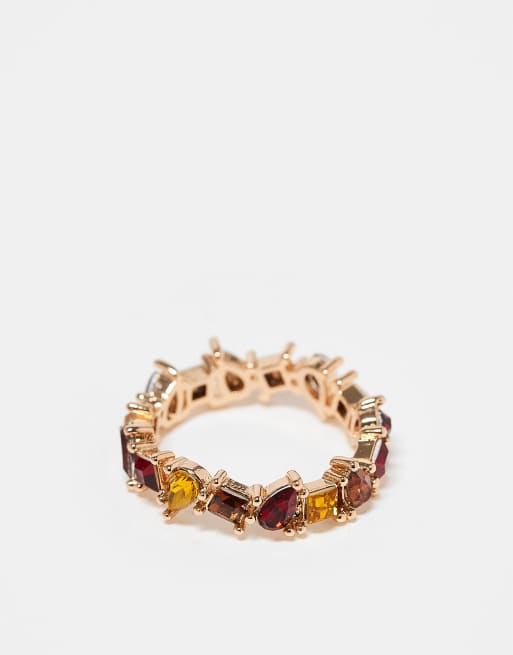 ASOS DESIGN - Ring met meerkleurige kristallen in goudkleur