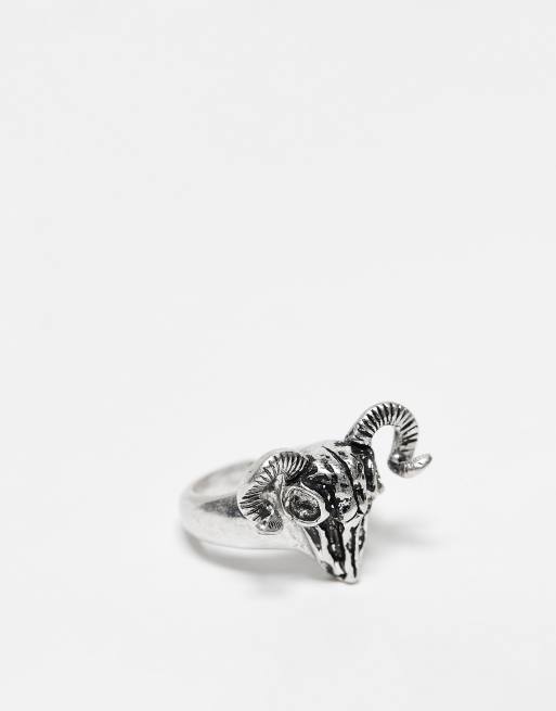 ASOS DESIGN - Ring met ramsschedelontwerp in gepolijste zilverkleur