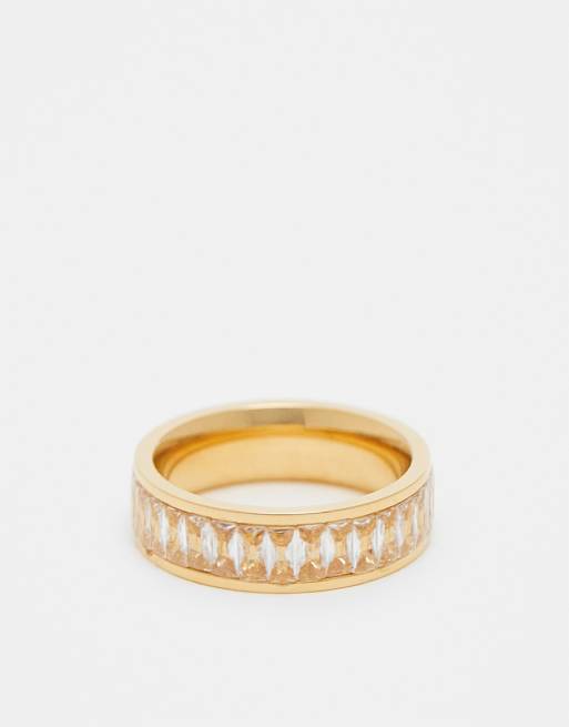 ASOS DESIGN - Ring van roestvrij staal ingelegd met zirkonia steentjes in goudkleur met cadeautasje