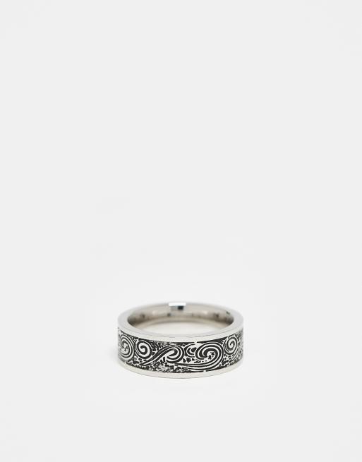 ASOS DESIGN - Ring van waterbestendig roestvrij staal met golvende textuur in zilverkleur