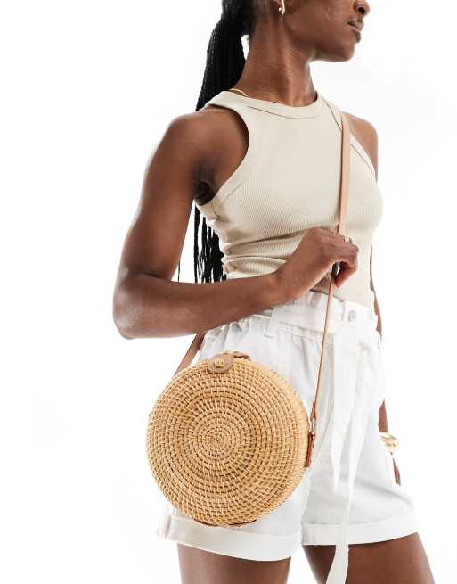 ASOS DESIGN - Ronde rieten crossbody tas van rotan