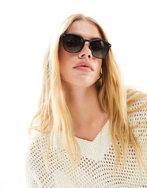 ASOS DESIGN - Ronde zonnebril met fijn montuur en glanzend zwart met rookglazen met kleurverloop