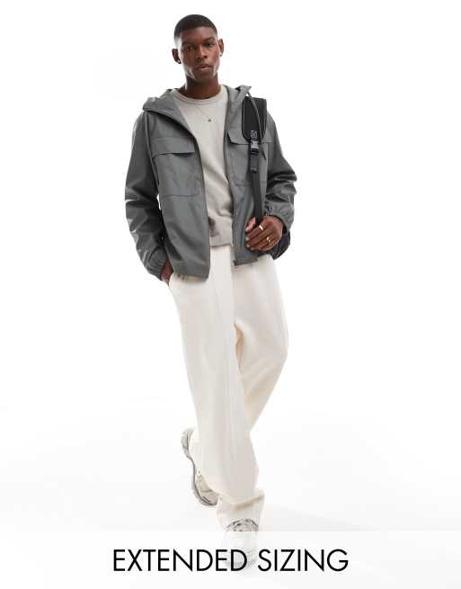 ASOS DESIGN - Rubberen regenjack met borstzakken in antraciet