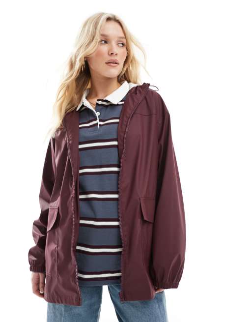 ASOS DESIGN - Rubberen regenjas in bordeauxrood